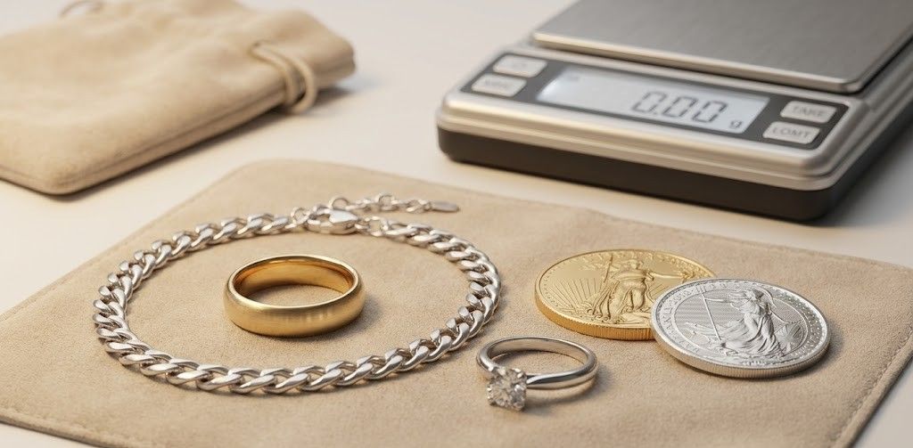We weigh every item in front of you using fully calibrated, trade-standard scales and base our offer on live metal prices at the time of your visit.
